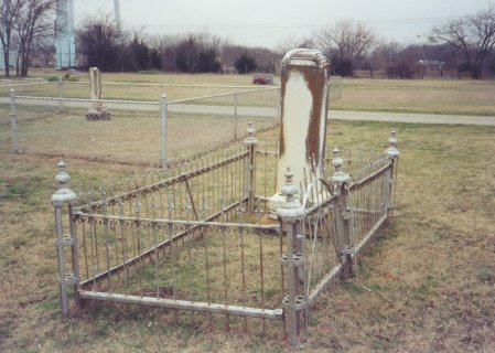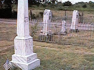 J. M. Benbrook monument with Price Arnold family plot in background. |