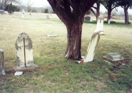 A few of the monuments moved here from Hunter Cemetery in 1949. |