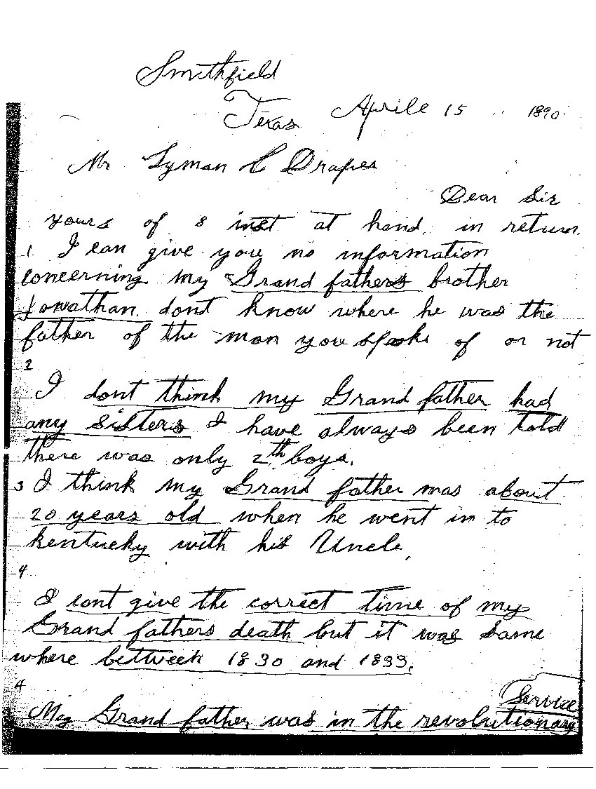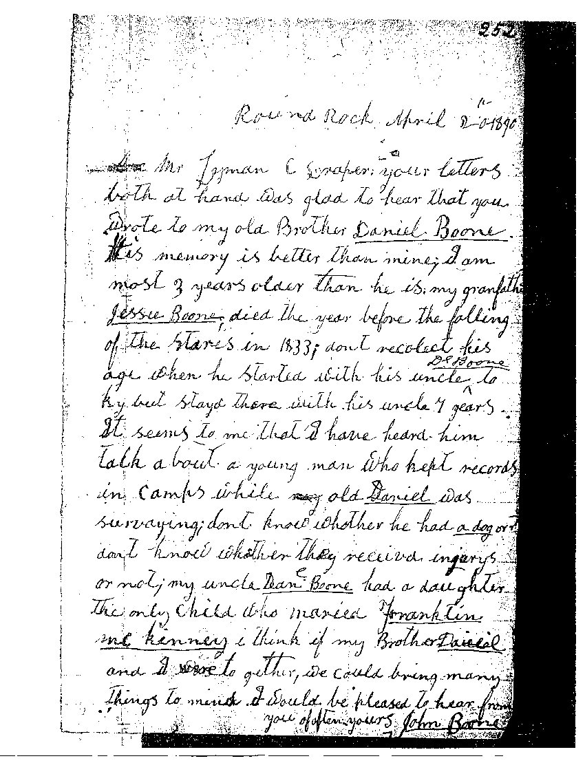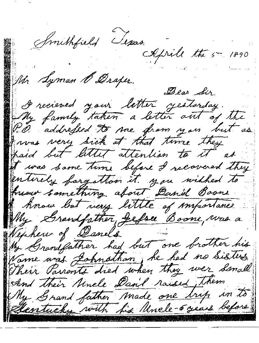 Letter from Daniel Boone to Mr. Lyman C. Draper - April 15 1890 |