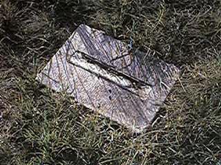 Appears to have been the base for a metal marker that was probably stolen in order to sell for scrap metal. |