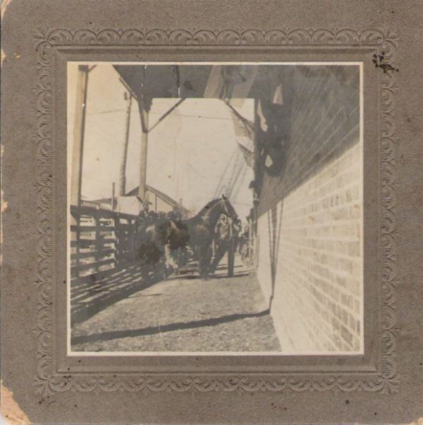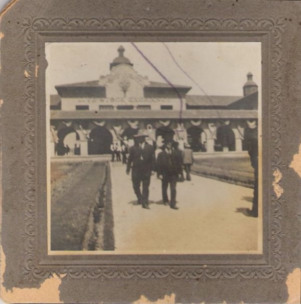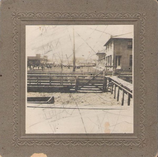 Cattle pens at the Stockyards My Grandparents and another couple are standing at back. |