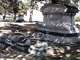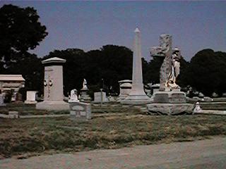 The first burial in Oakwood is beleived to be Frank L. Fox, step-son of John Peter Smith. Smith donated 20 acres of land for the cemetery in 1879 when Frank died. The cemetery currently covers 100 acres. As the following photographs will show, Oakwood is virtual sea of granite and marble. Source: Historic Oakwood Cemetery with Calvary Cemetery and Old Trinity Cemetery of Fort Worth, Texas, compiled by Helen McKelvy Markgraf and Rob G. Yoder. Published 1994 by the Fort Worth Genealogical Society. |