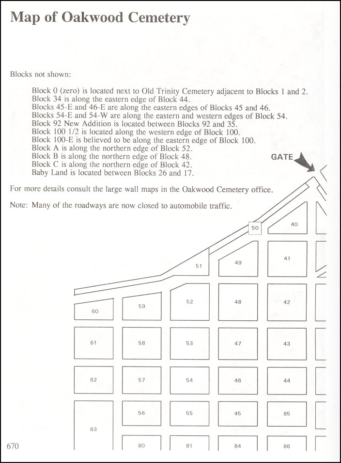 | Use this map to locate the Blocks in Oakwood Cemetery. A