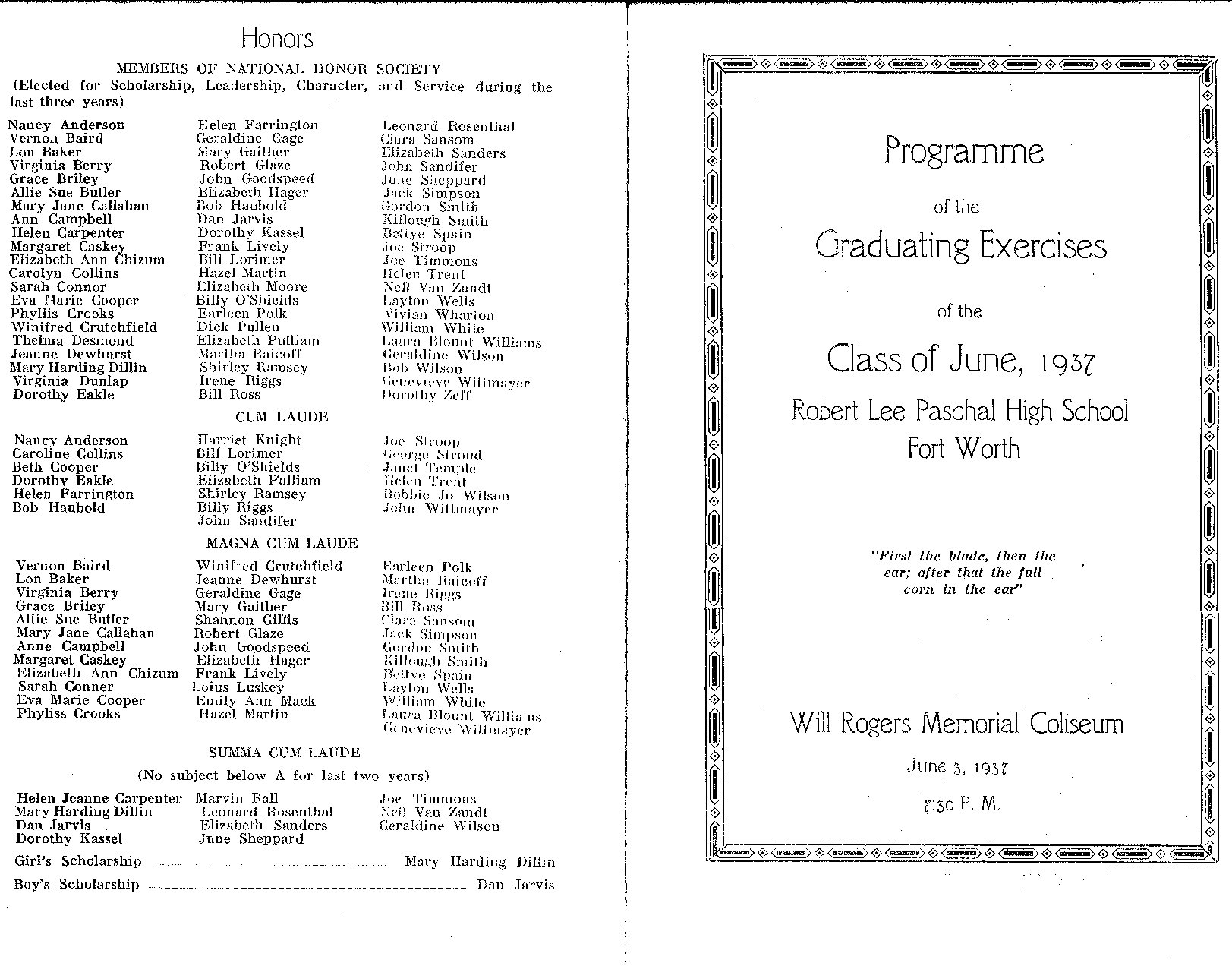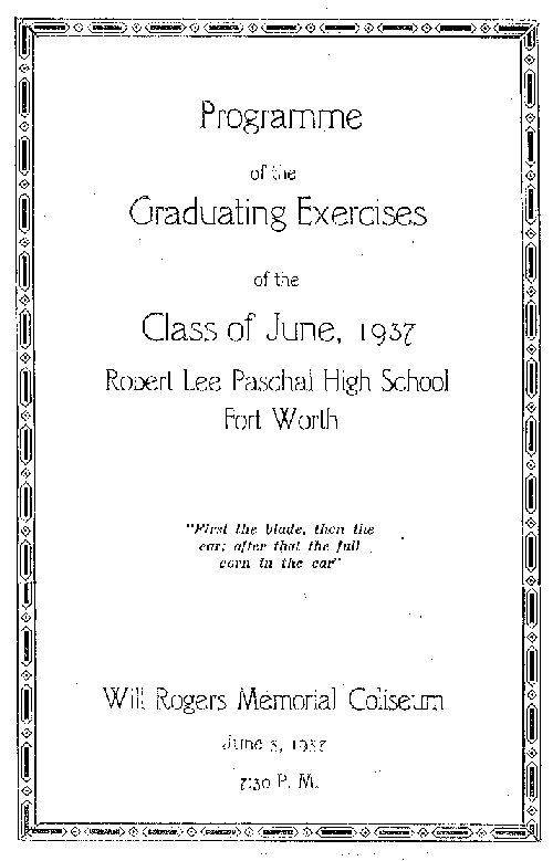 Robert Lee Pascal High School - Fort Worth Programme of the Graduating Exercises of the Class of June, 1937